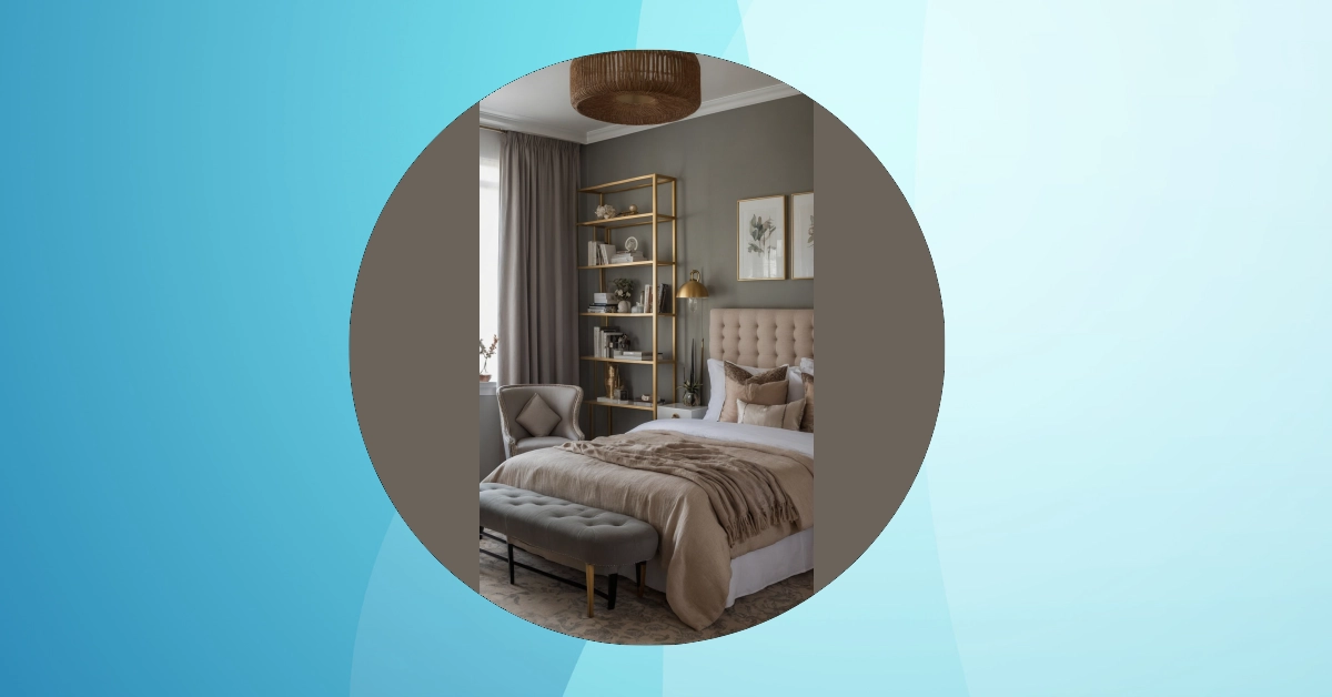 But hold on, it’s not just about the epic bed! That gold bookshelf, sparkling with cool decor and a few books, makes this room feel both fancy and smart. And that comfy armchair by the window? It’s practically begging you to curl up with a snack and your phone for an hour (or five). This whole space gives you ‘room to go’ wherever your imagination takes you – whether it’s planning your next big adventure from under that warm blanket, or just dreaming up funny memes. It’s the perfect spot to recharge and gather all your brilliant ideas, without ever having to actually leave.